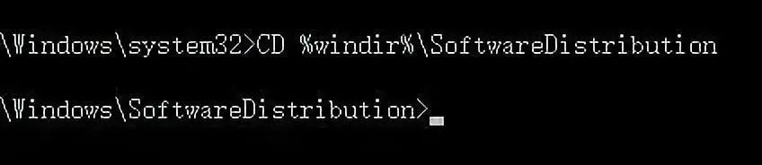 ③接下来输入“CD %windir%\SoftwareDistribution”命令并回车,这时便进入了SoftwareDistribution文件夹。直接打开“C:\Windows\SoftwareDistribution”文件夹,删除其中Download和DataStore文件夹中的所有文件。