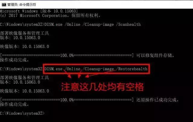 等待扫描进度到100%(通常这一过程需要几分钟甚至更长时间)。若检测正常,则显示“未检测到组件存储损坏。操作成功完成。
