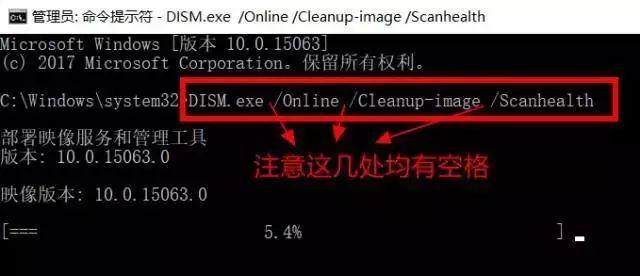 ①打开“命令提示符(管理员)”窗口,然后输入如下命令并回车运行:DISM.exe /Online /Cleanup-image /Scanhealth