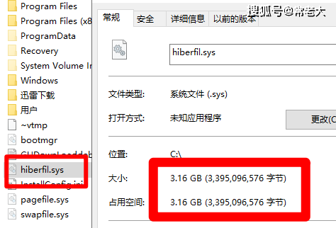 电脑开启休眠后,会自动生成镜内存镜像文件,以便唤醒电脑以后可以快速开启程序。但是电脑在休眠的时候会占用大部分的空间,有3G作用,这个文件就在C盘更目录下,如图所示。