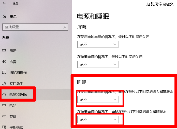 1.依然打开【设置】,找到【系统】,然后找到【电源和睡眠】,改成如图所示的界面。