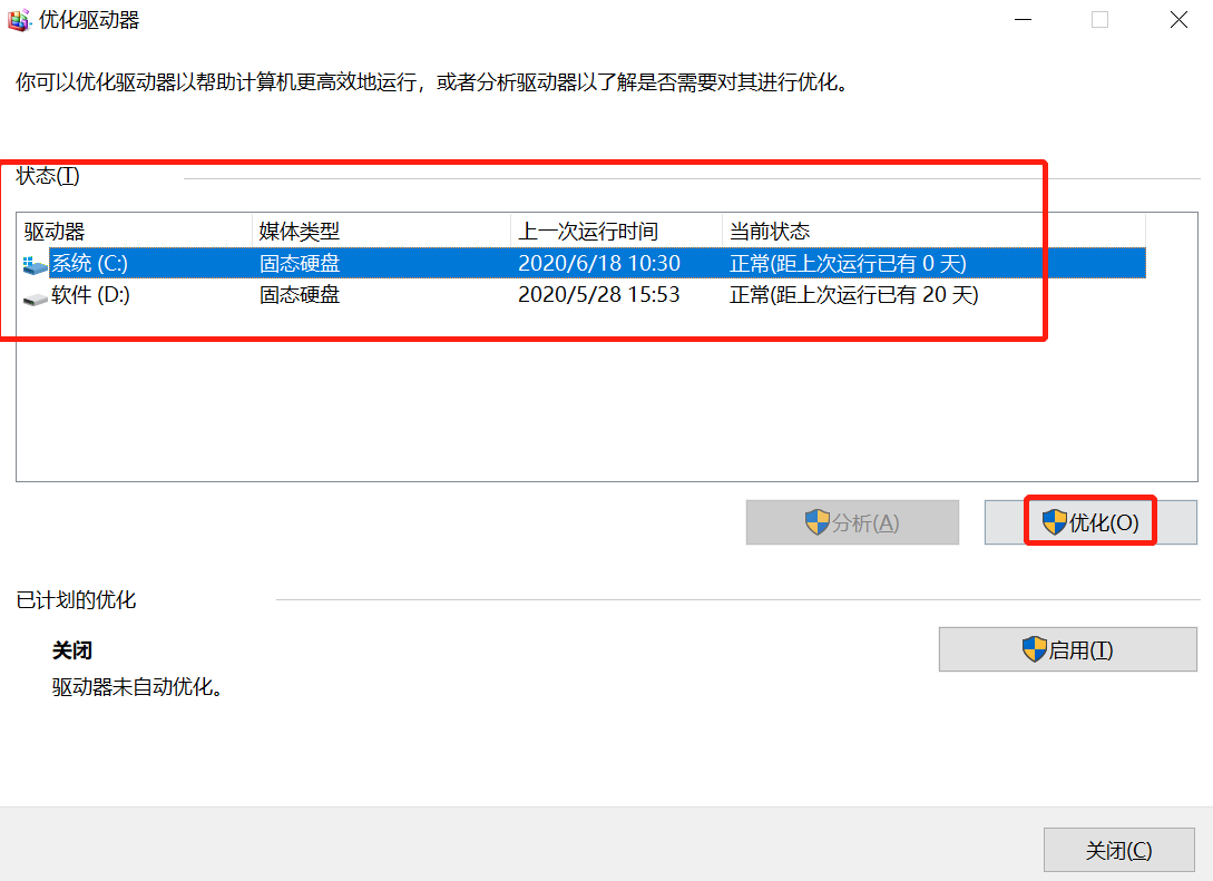 选择要优化的驱动器,然后单击[优化]。