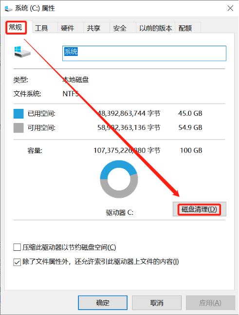 然后在[常规]界面中选择[磁盘清理]。
