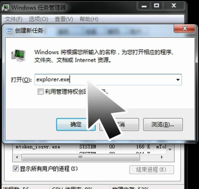 6、在弹出的窗口输入栏中输入explorer.exe,然后单击确认按钮。