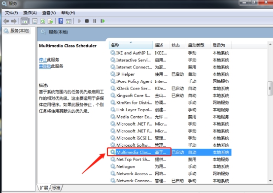 进入服务界面,在右侧找到“Multimedia Class Scheduler”选项并点击进入。
