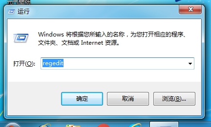 在随后出现的窗口中的“打开”栏中键入“regedit”并单击“确定”按钮运行注册表编辑器。