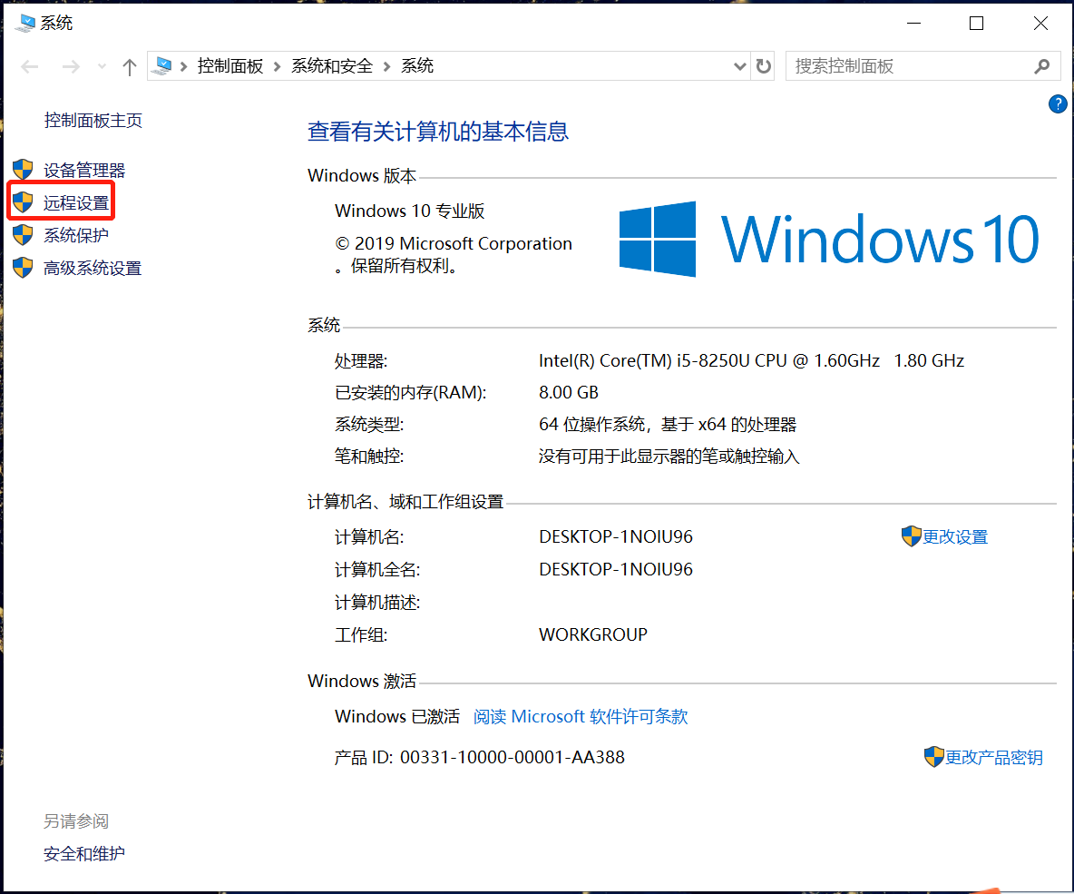 然后在“属性”页面中找到并点击“远程设置”。