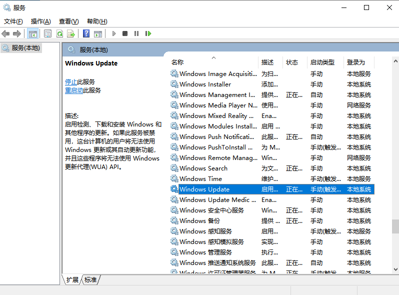 或直接使用组合键“win + R”打开运行,然后输入“ services.msc”命令,再单击“确定”。找到Windows Update项后,将“启动类型”更改为“禁用”。