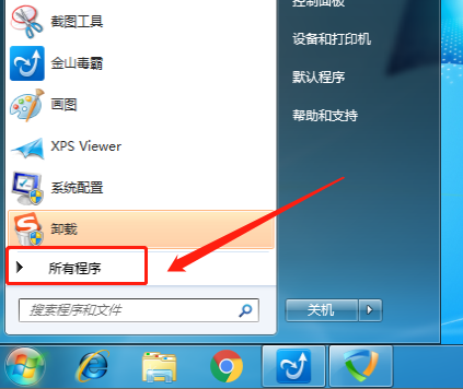 首先,点击电脑开始菜单,进入到“所有程序”中。