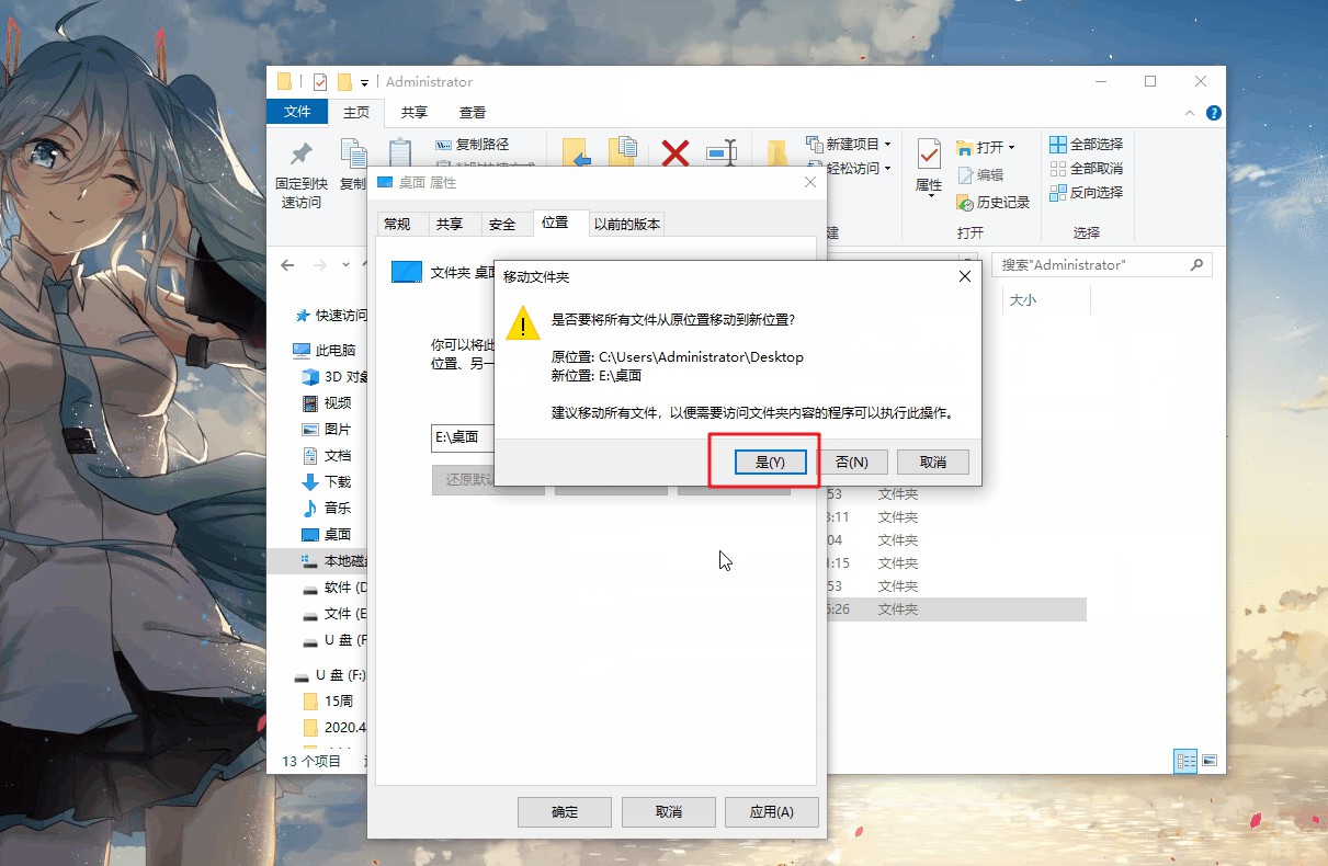 6、 出现警告窗口时,点击“是”确认移动,最后等待文件移动完毕即可