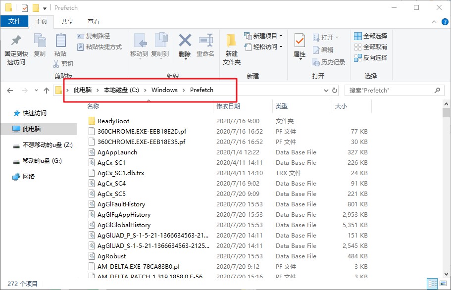 文件夹位置:此电脑\C:\Windows\Prefetch