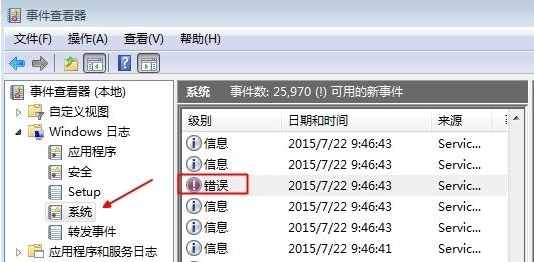2,展开"Windows日志”,在“系统”事件中,找到蓝屏的错误日志,查看出现蓝屏的代码,再去搜索对应的解决方法。