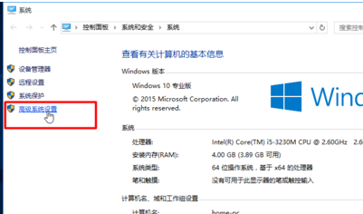 2,进入系统属性界面后,点击界面左侧的“高级系统设置”进入下一步。