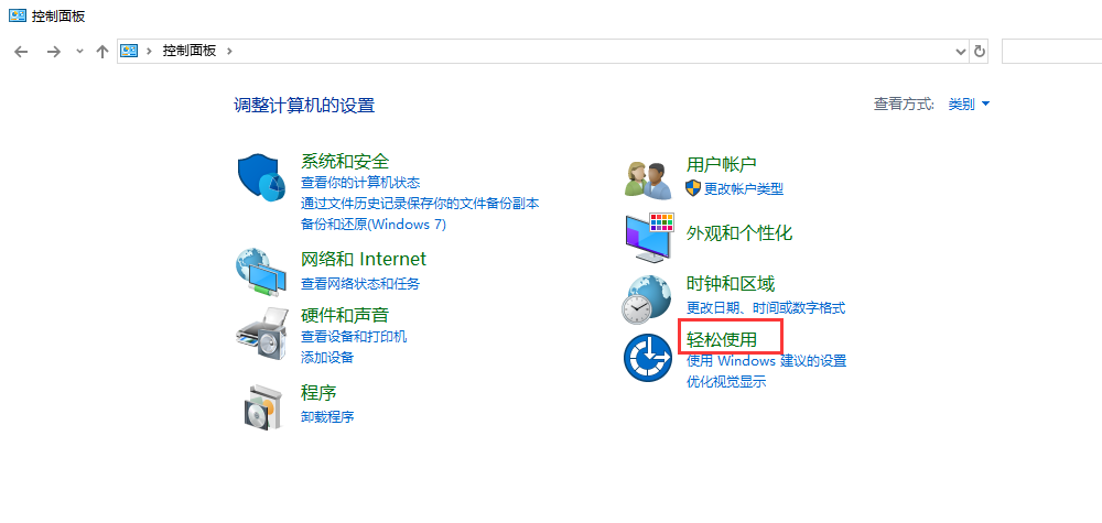 3,进入控制面板界面后,选择“轻松使用”选项进入。