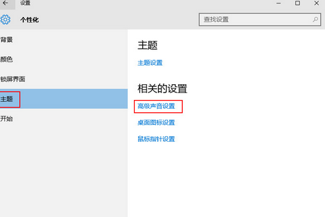 2,点击界面左侧的“主题”选项,然后在右侧点击“高级声音设置”下一步。