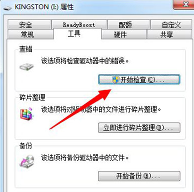 3,进入工具界面,点击“查错”下方的“开始检查”下一步。