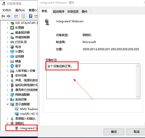 7,等待系统重新安装摄像头和驱动,再次进入摄像头属性,可以发现设备正常运转了。