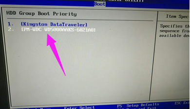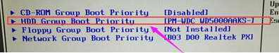 3,在新页面中选择“HDD Group Boot Priority”选项并回车