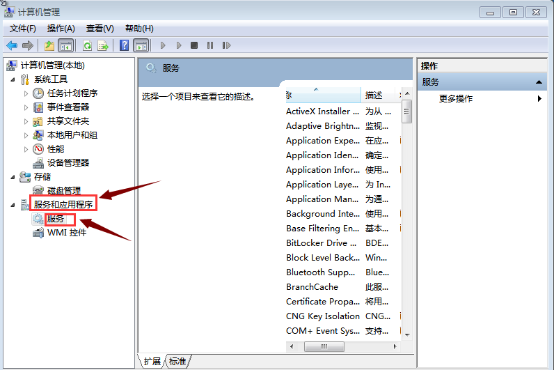 2,进入计算机管理器界面,选择界面左侧的“服务和应用程序”,然后点击“服务”,在界面右侧找到“Windows Update”,并右键点击“已禁用”即可