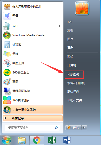 1,点击桌面左下角“开始菜单”,选择“控制面板”进入。