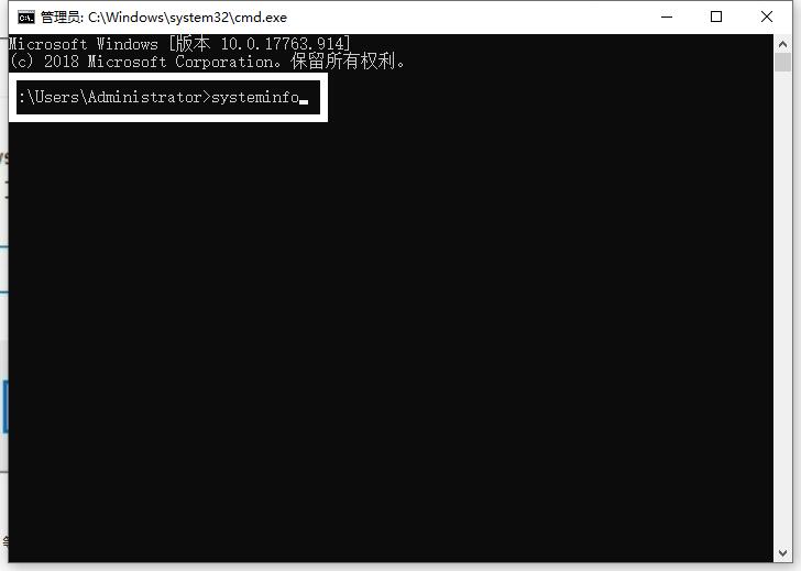 输入systeminfo按回车确定,等待一会。