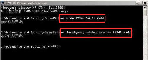 4。然后输入net localgroup administrators smile/add将用户帐户升级到administrator帐户。