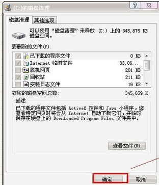 2。然后系统会自动扫描C盘的垃圾文件,检查要删除的文件,点击确定进入下一步。