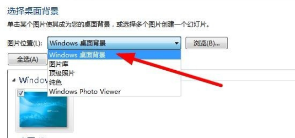 3。如果要更改系统的桌面背景,请单击“图片位置”倒三角形。
