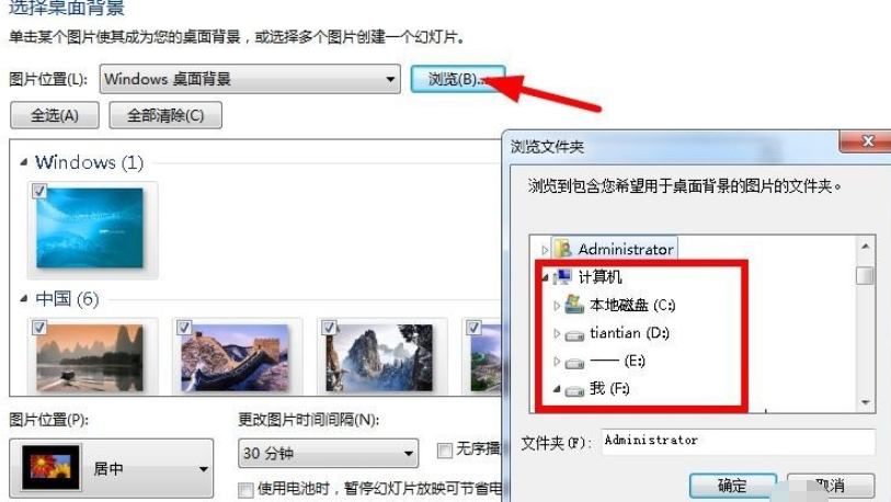 4。你也可以点击“浏览”来选择你自己的图片作为桌面背景。