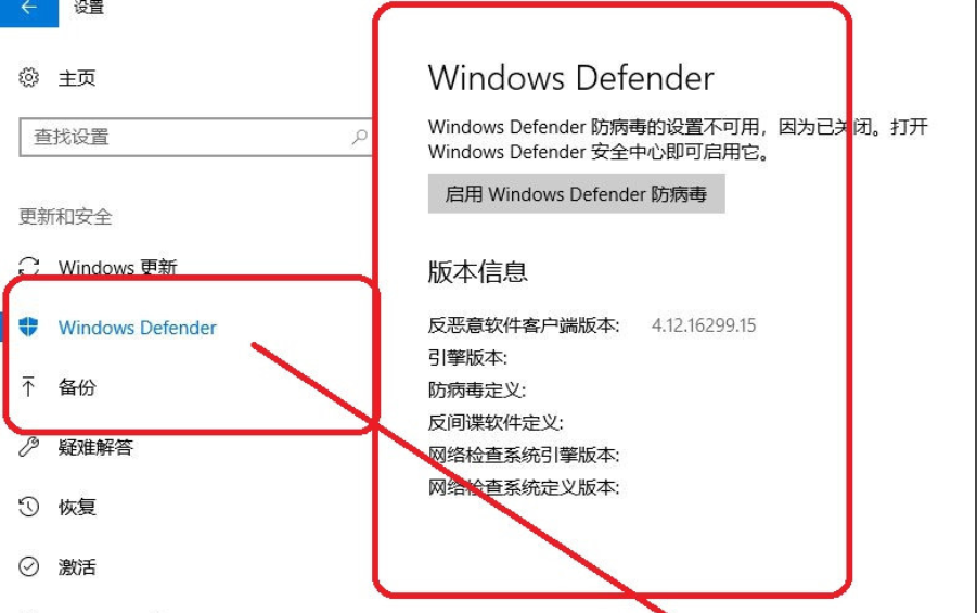 4。然后启动“Windows Defender”,查看版本信息,如下图所示;