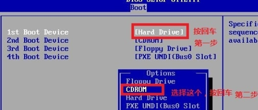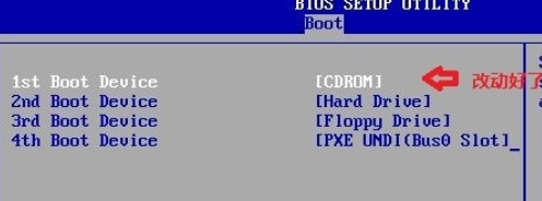 17。将第一个引导项的第一个引导设备的[CDROM]更改为[hard deice]