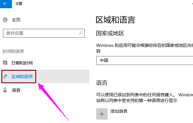 3。单击左侧界面中的区域和语言选择,然后单击右侧的“添加语言”选项进入下一步。