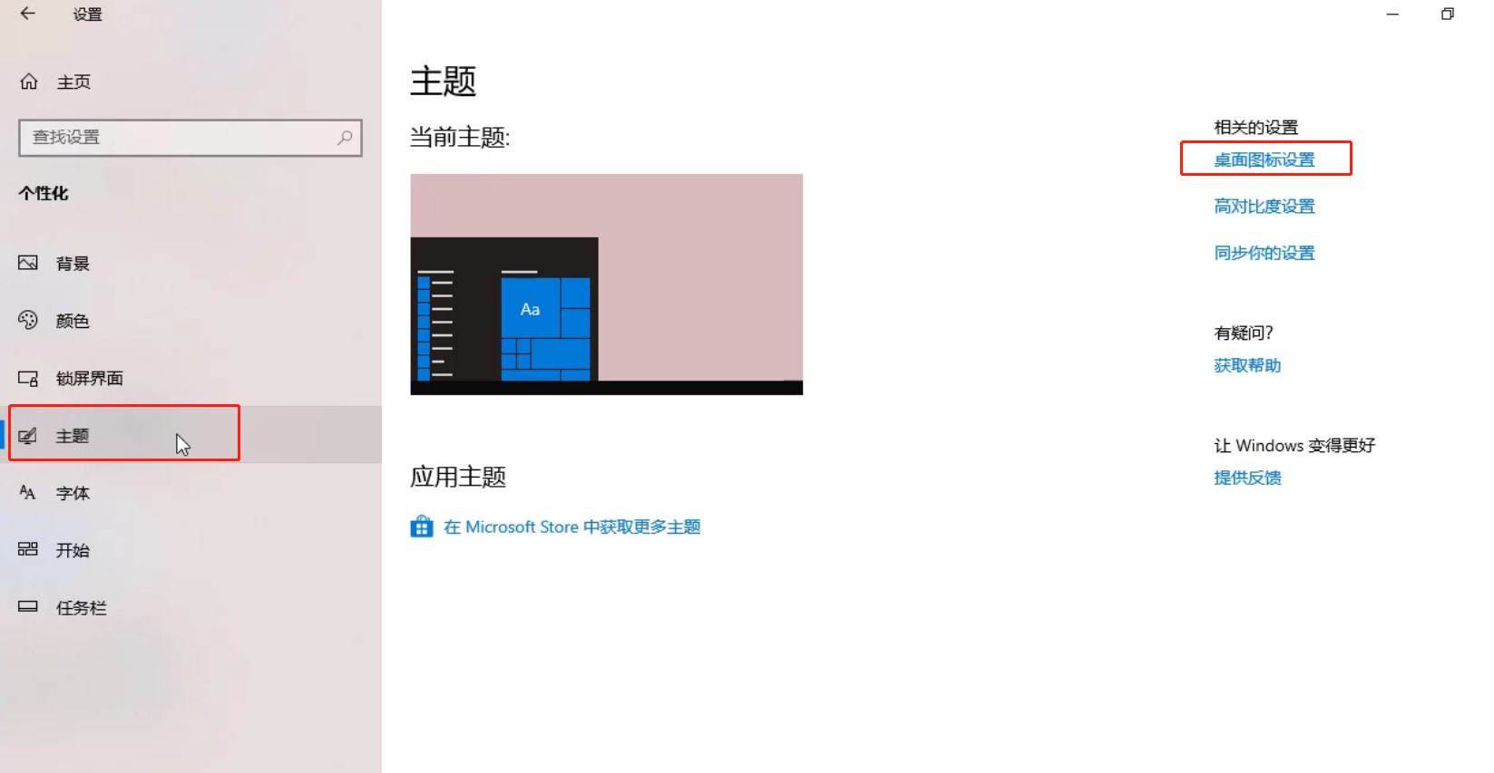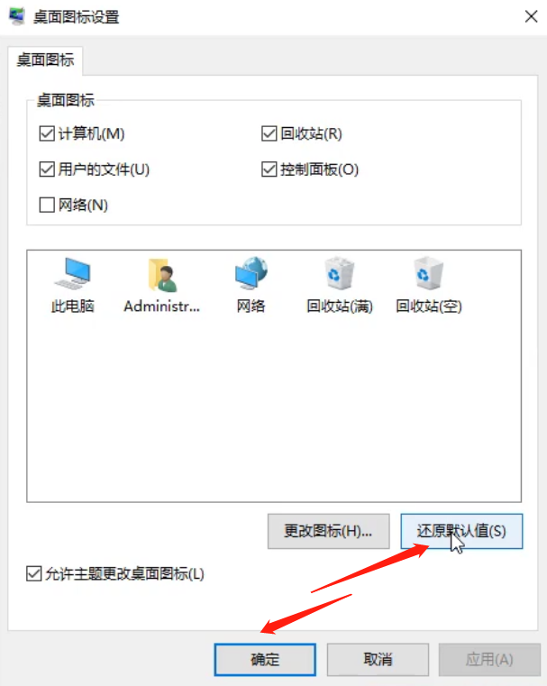 3、打开桌面图标设置后,选择还原默认值,然后确定保存即可。