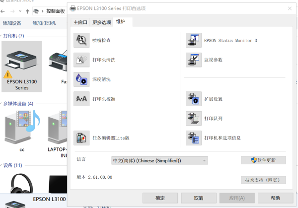 4、然后,我们可以在打印首选项中看到维护选项。