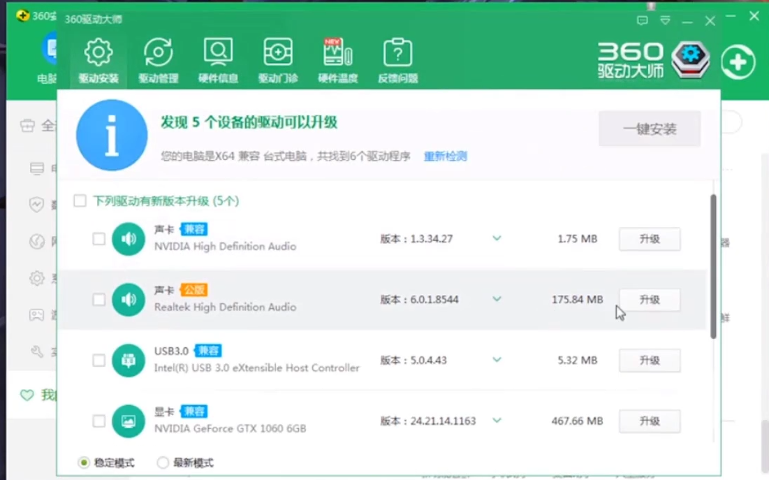 1.这可能是由驱动程序引起的。我们可以先打开360安全卫士,然后使用内部的360驱动大师来检测驱动程序。如果驱动程序丢失,则可以直接下载。