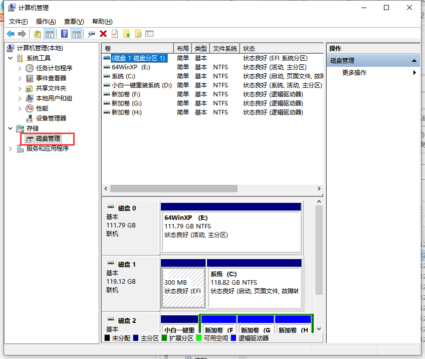 4.进入计算机管理界面后,单击左侧的存储,然后将出现磁盘管理,再次单击它。