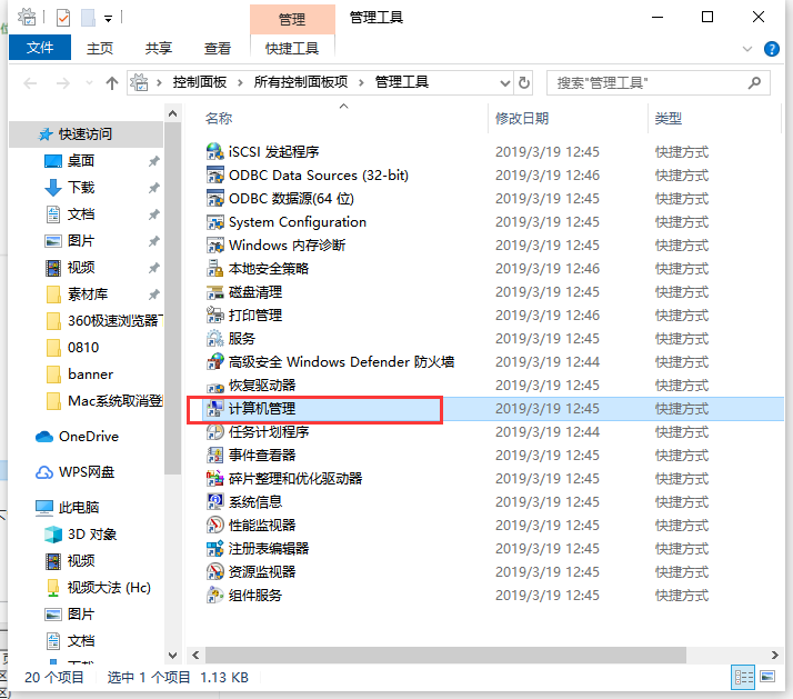 3.进入管理工具界面后,内部有一个计算机管理,单击。