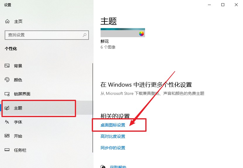 2、然后,点击切换主题,如图所示,点击“桌面图标设置”