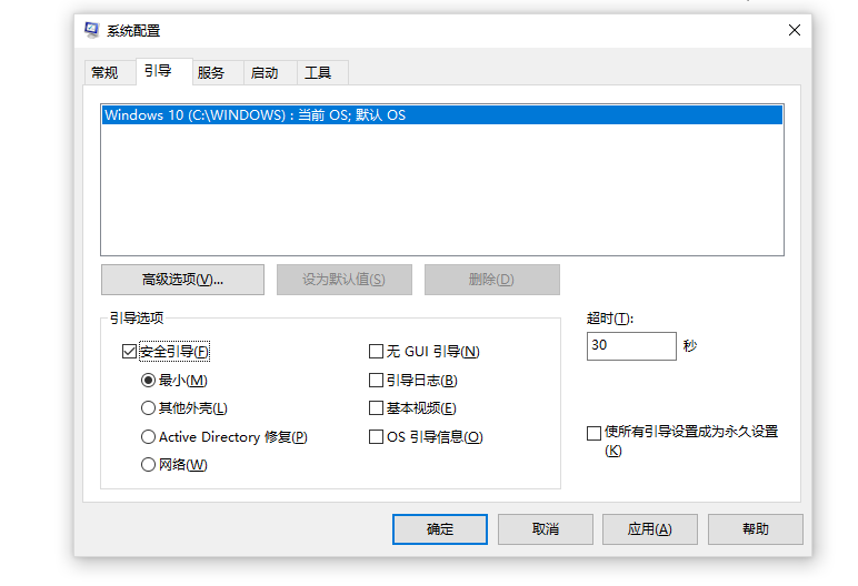 点击确定后,提示上图窗口,我们重新启动下电脑就是安全模式了,在安全模式下电脑只运行电脑自带的驱动程序,然后我们就可以操作清理电脑了。退出安全模式只需要相同的步骤然后把“安全引导”取消勾选点击确定保存即可