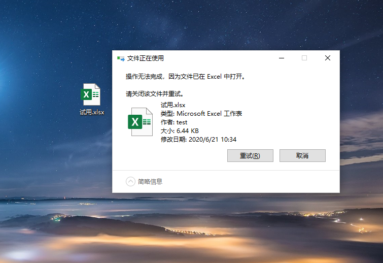 这里我建立了一Excel文档进行删除,提示无法删除。