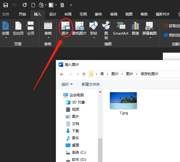 第四步点击图片选项后,会出现本地文档选择图片,我们选择图片点击插入或者双击图片都可以插入word文档中。