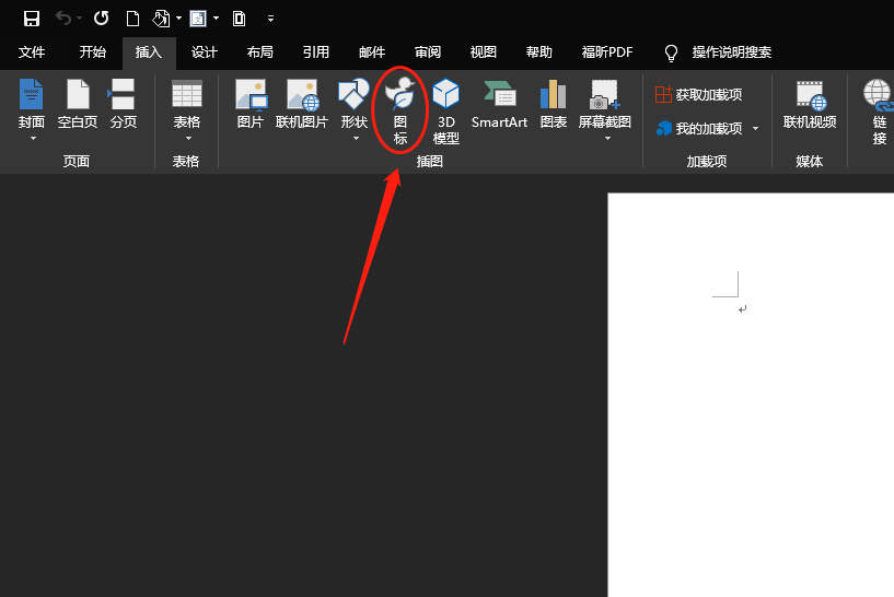 第三步我们在插入选项界面中找到插图窗口,在窗口中选择“图标”选项按钮。