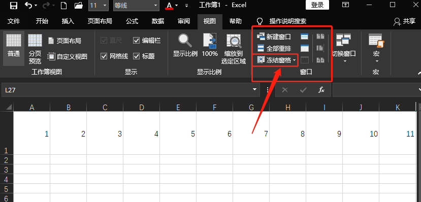 第四步我们在“视图”接线选项中选择【冻结窗口】选项按钮。