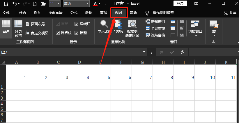 第三步我们向下滑动浏览发现首行已经是看不到了,那么我们开始操作锁定首行,我们点击上方工具栏中的“视图”选项按钮。
