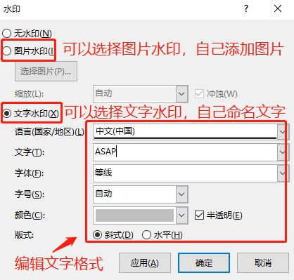 我们可以选择已有的格式,也可以选择图中下方的“自定义水印”。