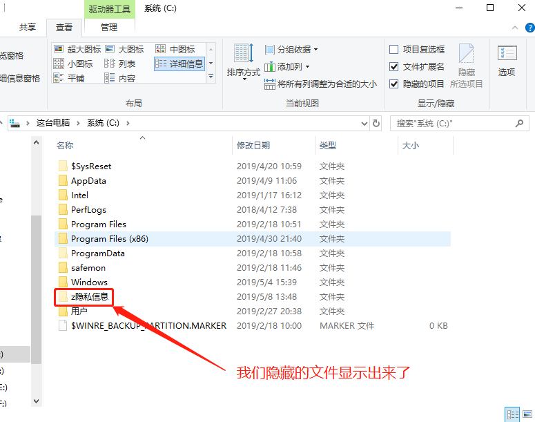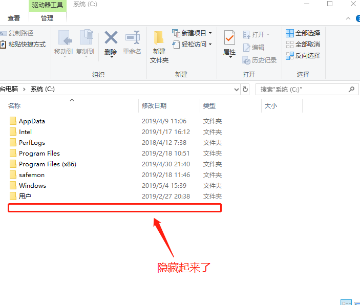 操作完成后,我们编辑的文件夹就在该目录隐藏起来了。