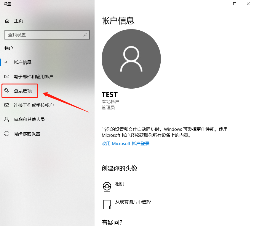 我们点击更改账户设置后进入设置窗口界面,我们在窗口选项中选择“登陆选项”。