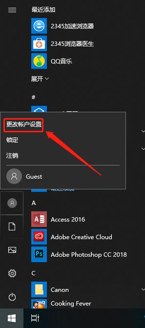 我们打开电脑,然后鼠标点击“开始”菜单按钮,在左侧选项中找到我们“电脑账户图标按钮”。