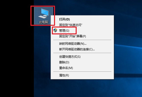 1、在桌面上右键此电脑图标,打开管理选项。