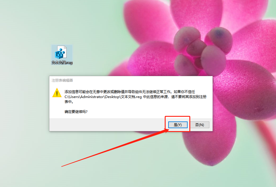 5、双击文本文档.reg,并在弹出窗口时,点击“是”即可